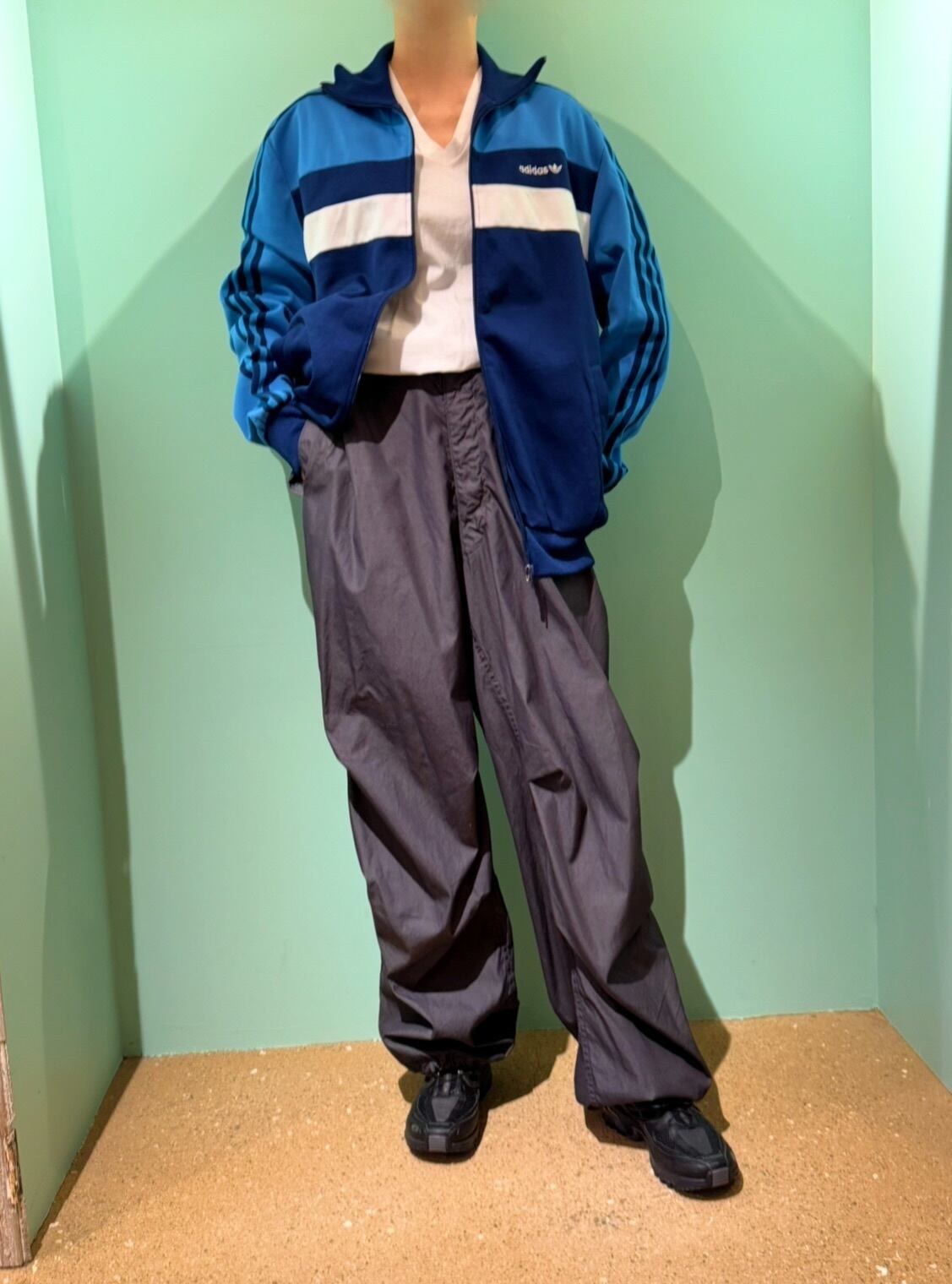 切り替え配色に刺しゅうadidas、オーバーサイズで着て