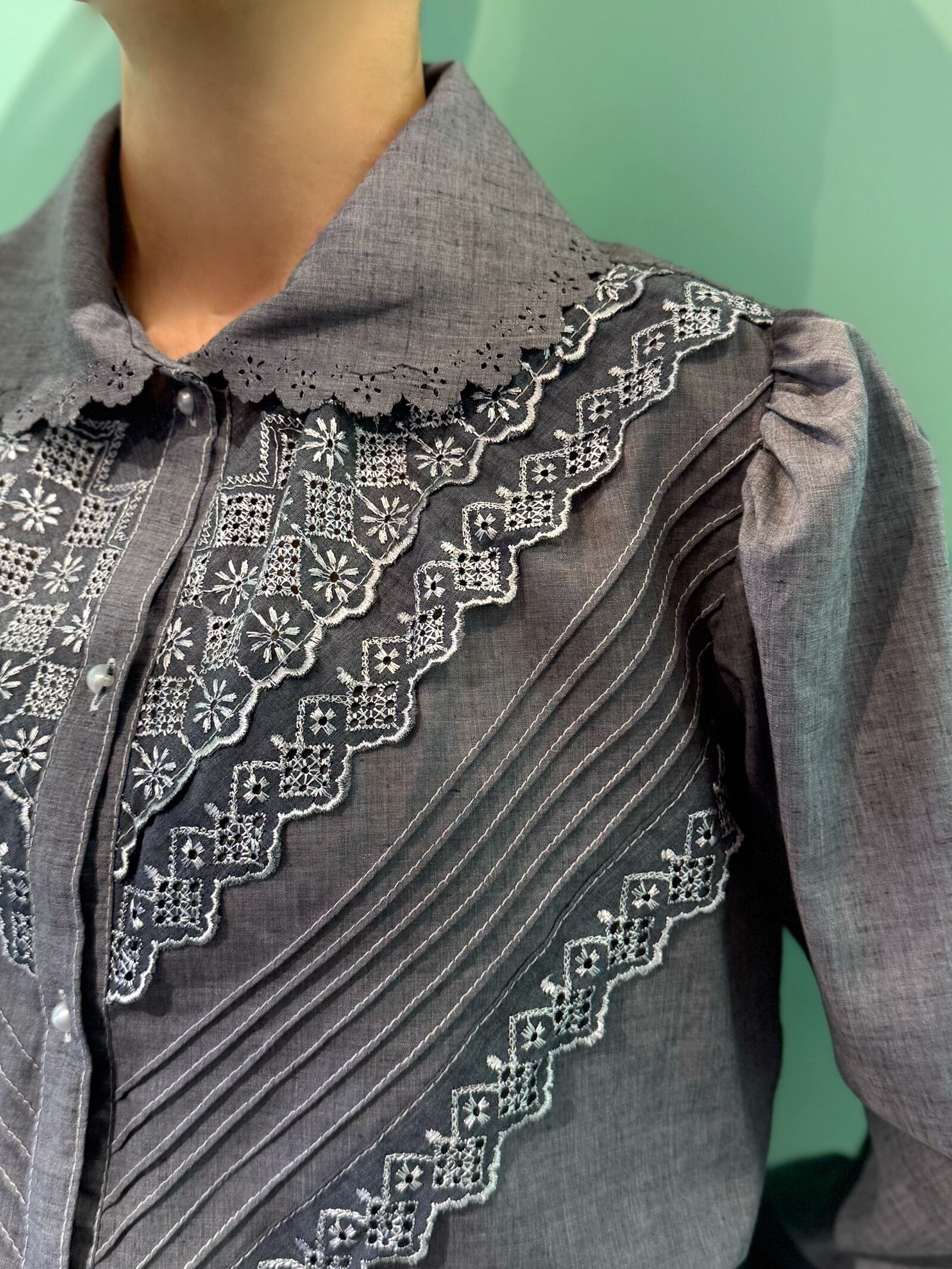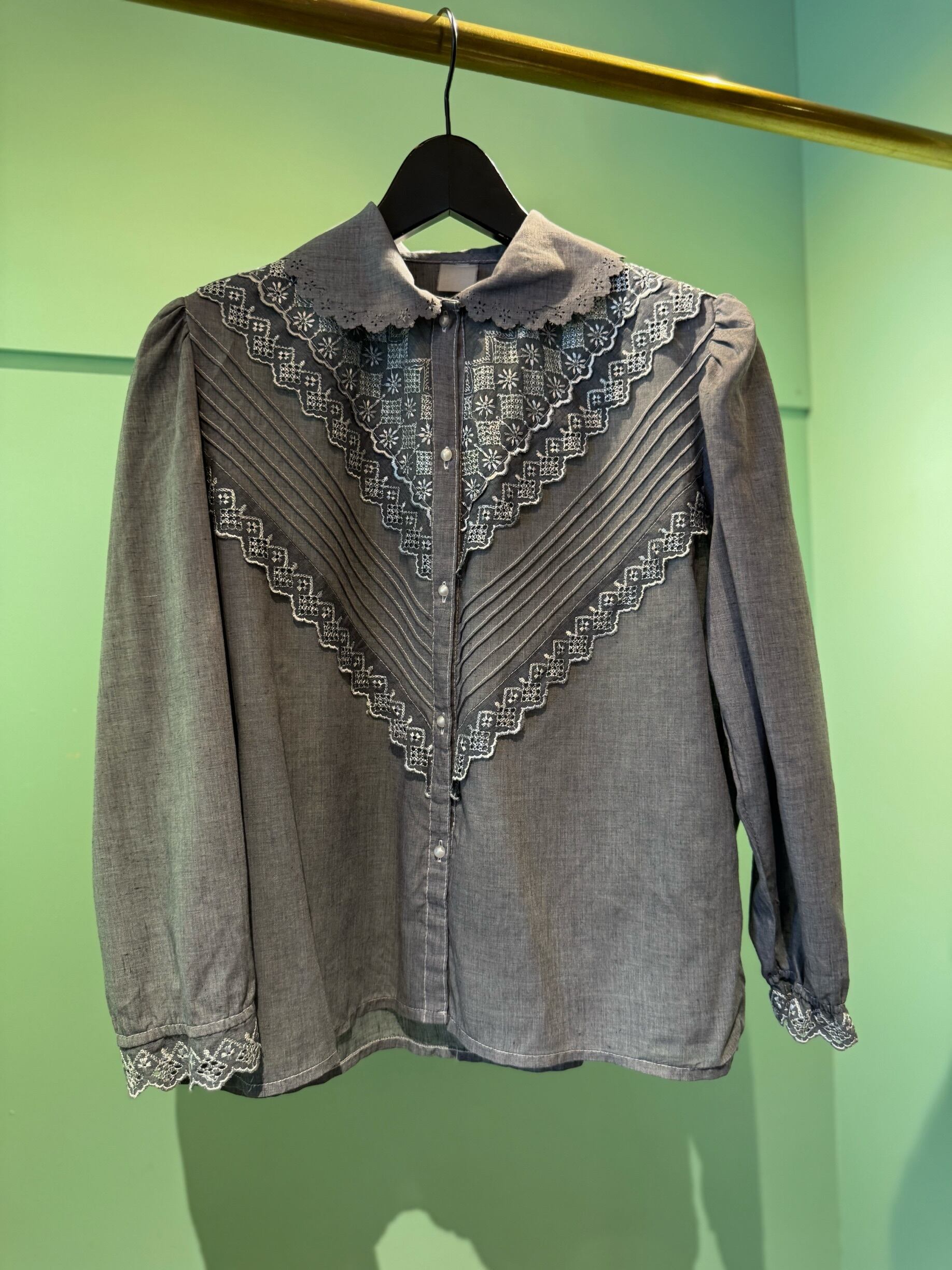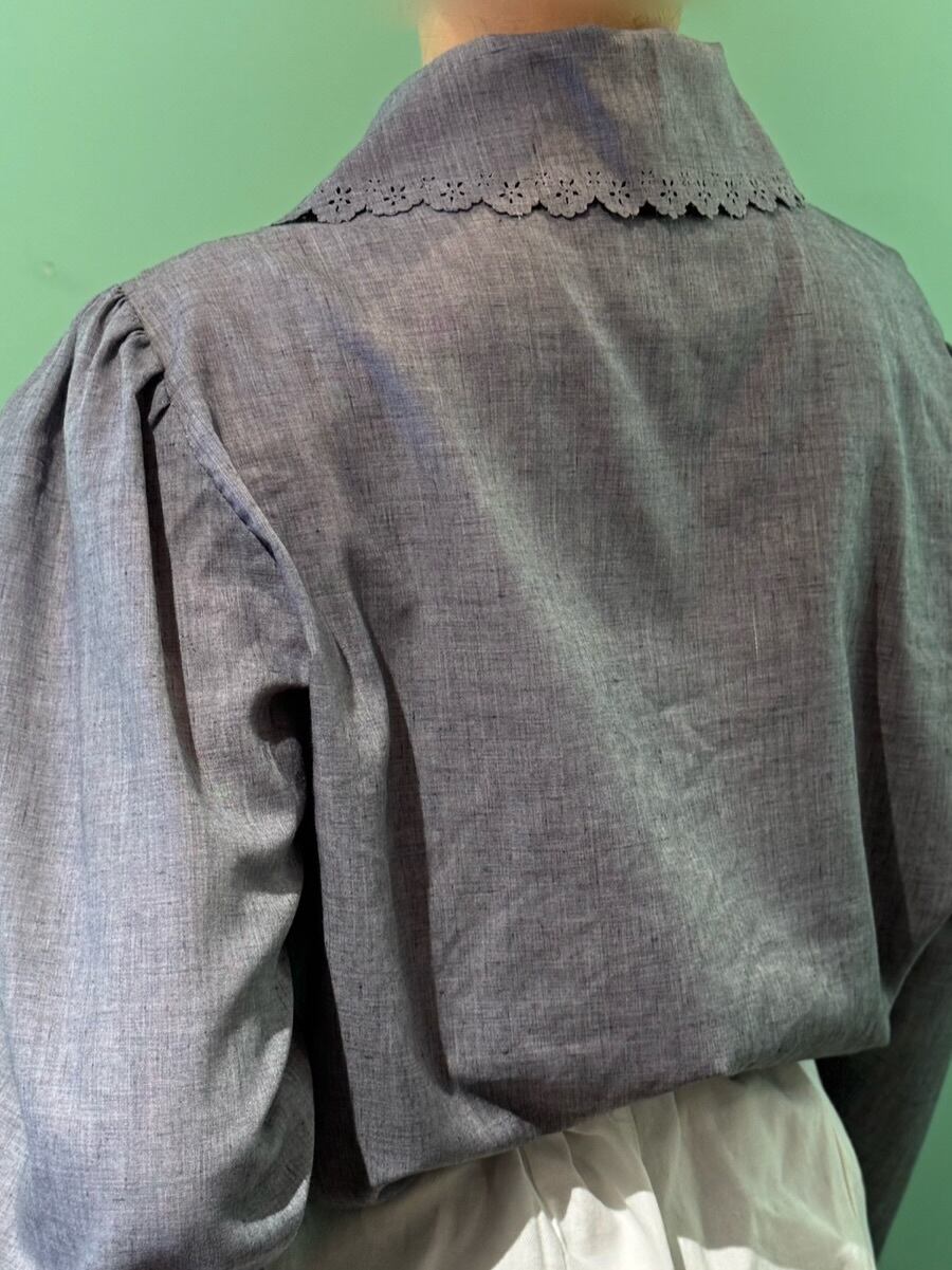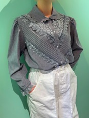 ヴィンテージ [ヨーロッパ]グレー・レースブラウス 0405B