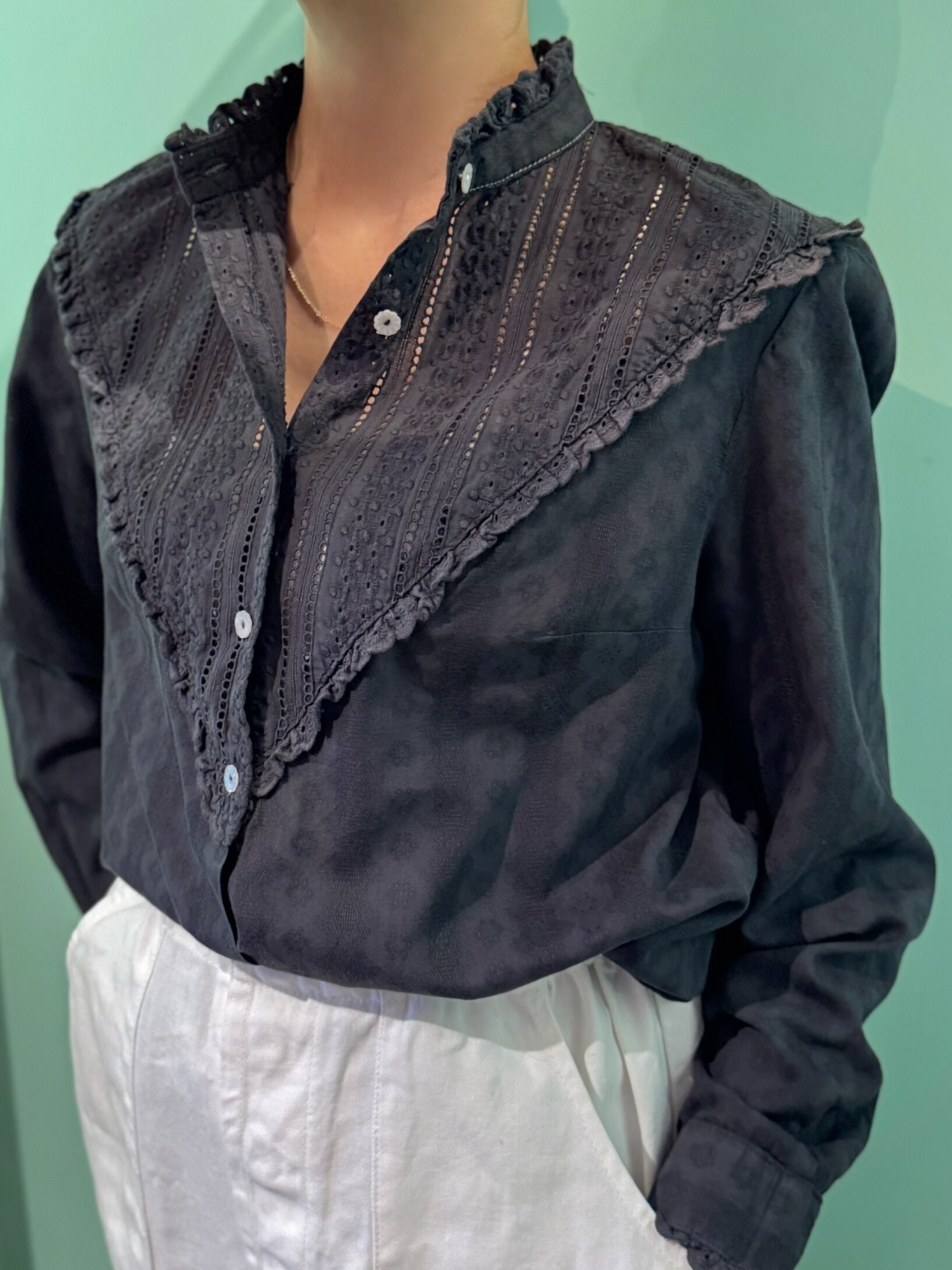 ヴィンテージ [ヨーロッパ]ブラック・レースブラウス 0405A