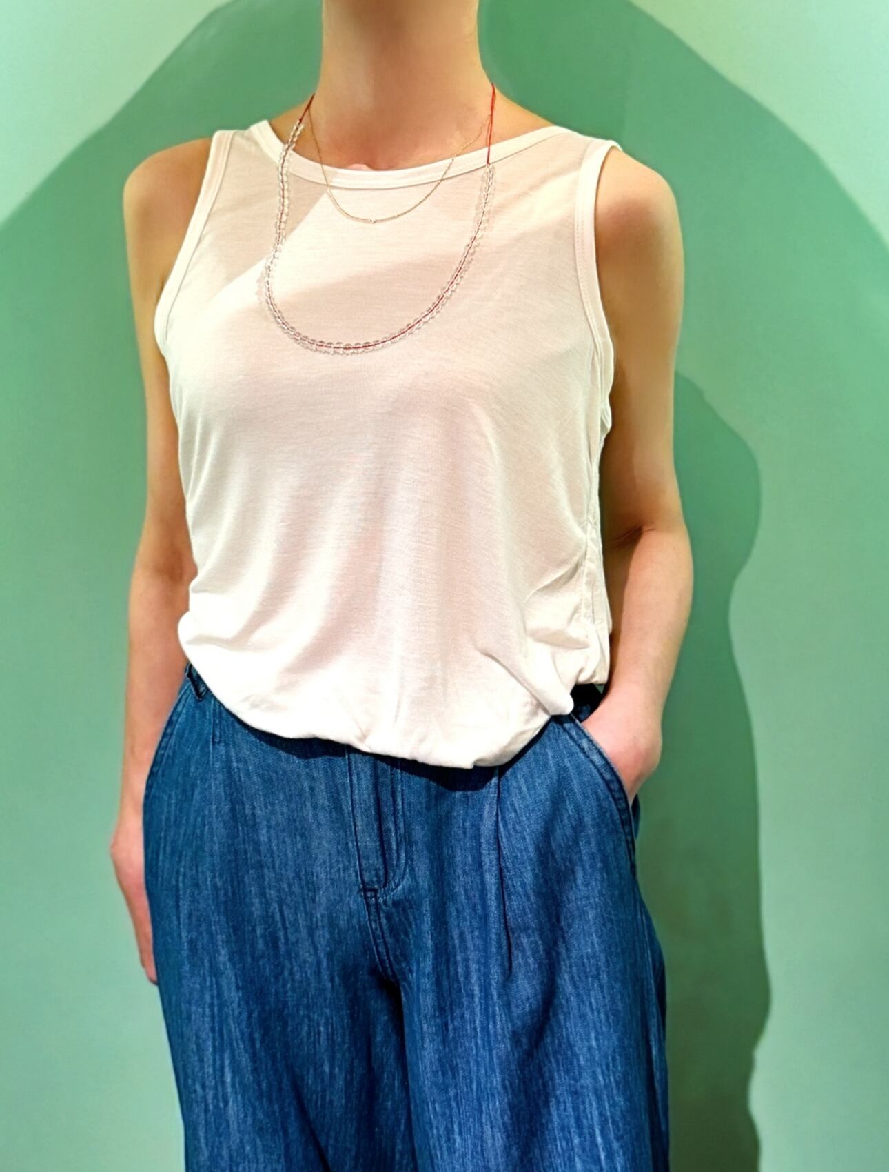 Tシャツにタンクトップにネックレスを身につけるだけで