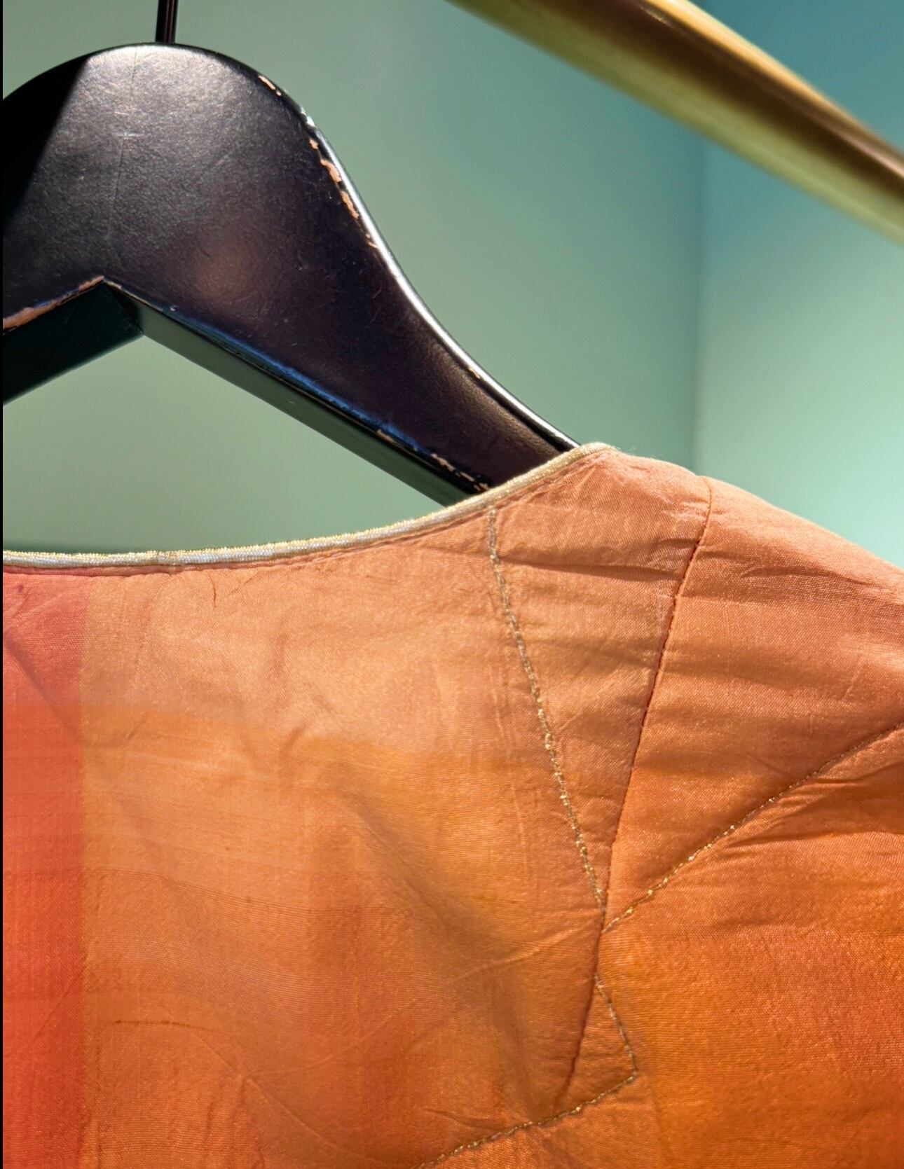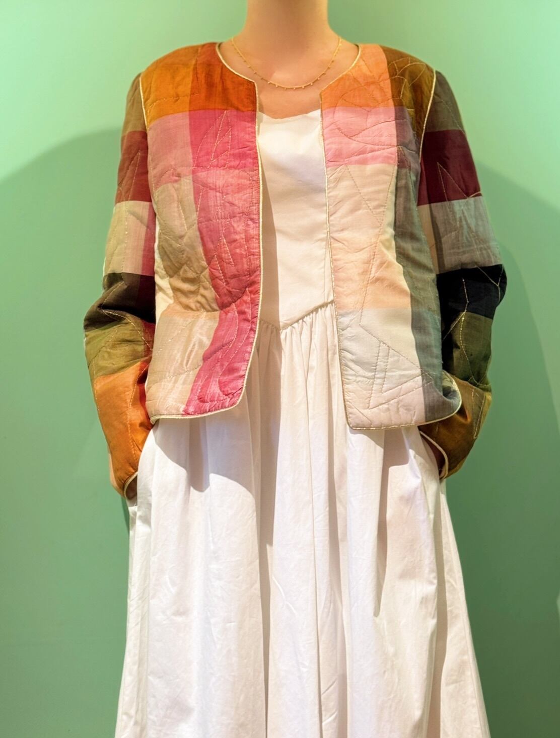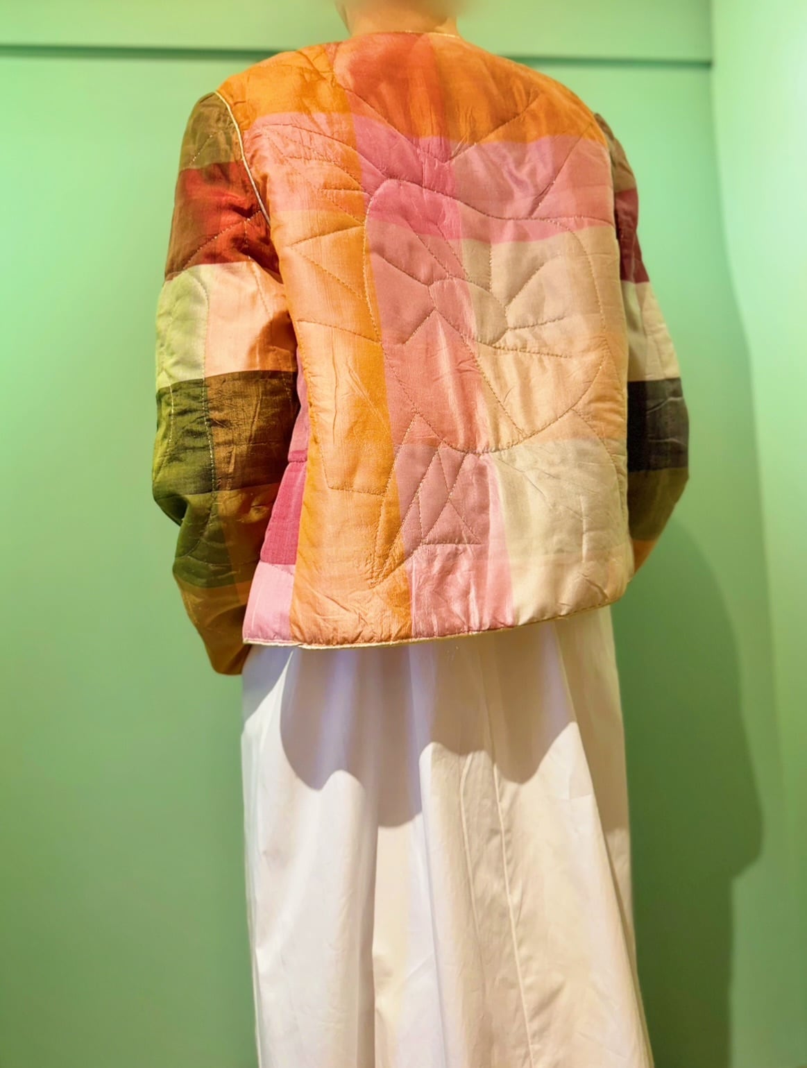 滑らかなシルク(気軽な程よいハリ感の厚み)とふっくらとしたキルティングが品のある光沢と軽やかな着心地です。