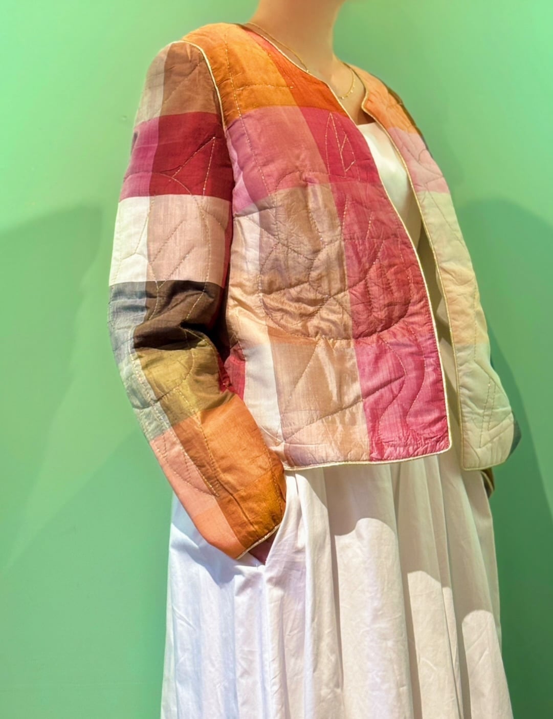 絶妙なカラーの組み合わせと、手縫いのようなキルティングが映える、1点もの。