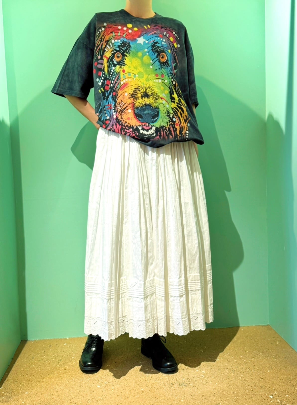 ゆったりとしたXLサイズで、ボリュームスカートと合わせて遊びのあるバランスに。もちろん、パンツにも。