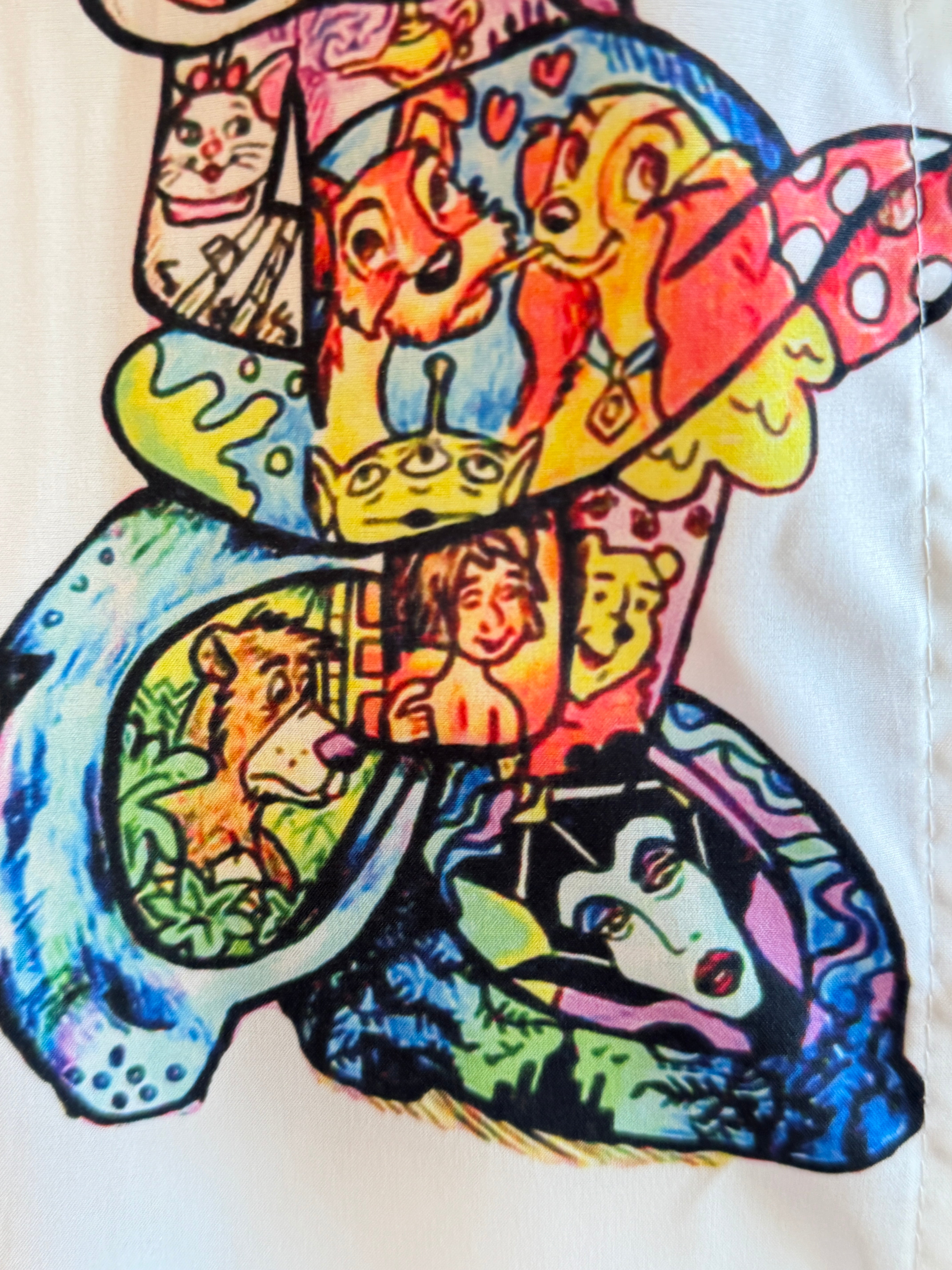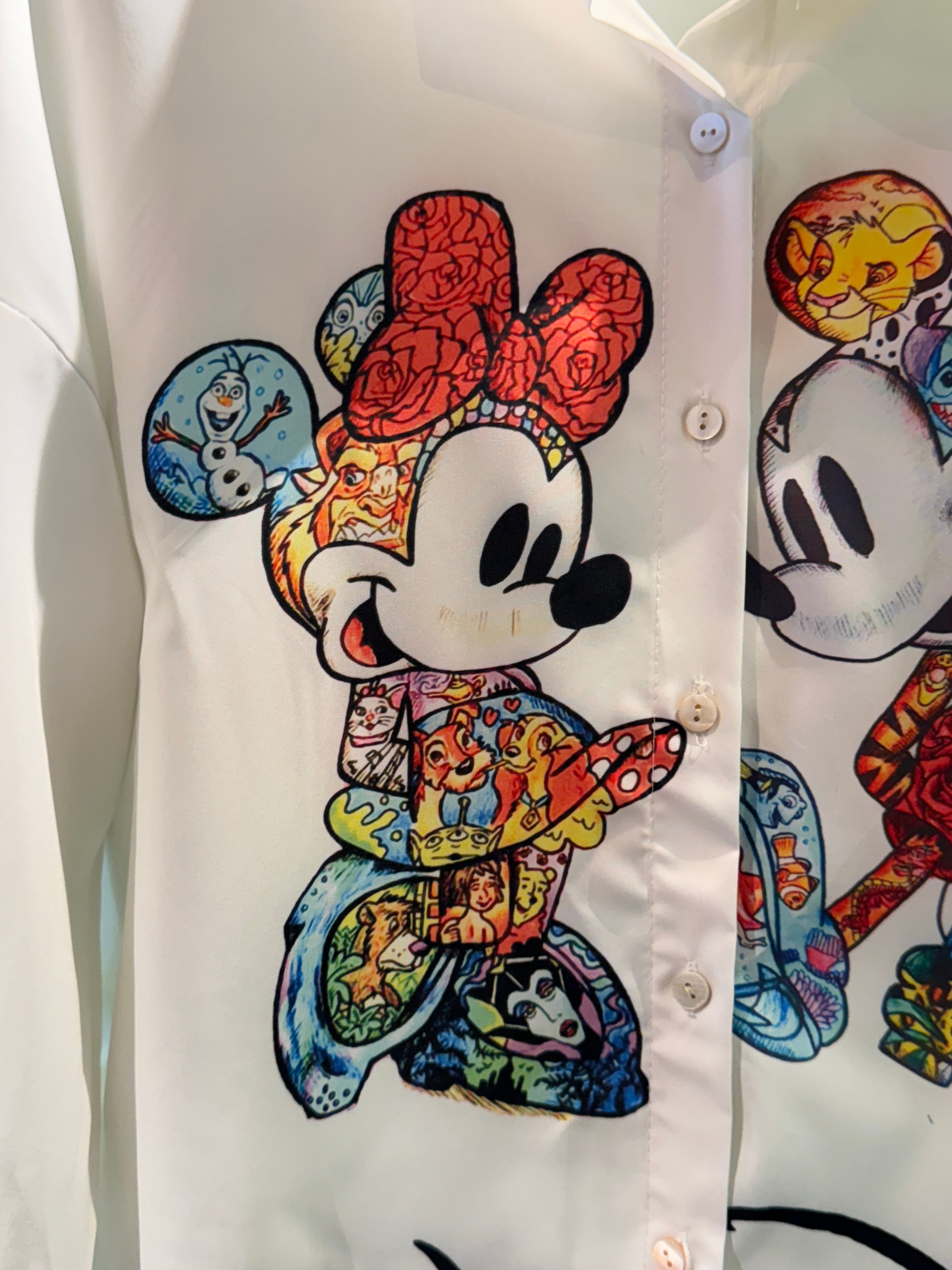 シンバ、アリエル、スティッチ、白雪姫、ジーニー…一枚でディズニーの世界をまとえる贅沢さです。