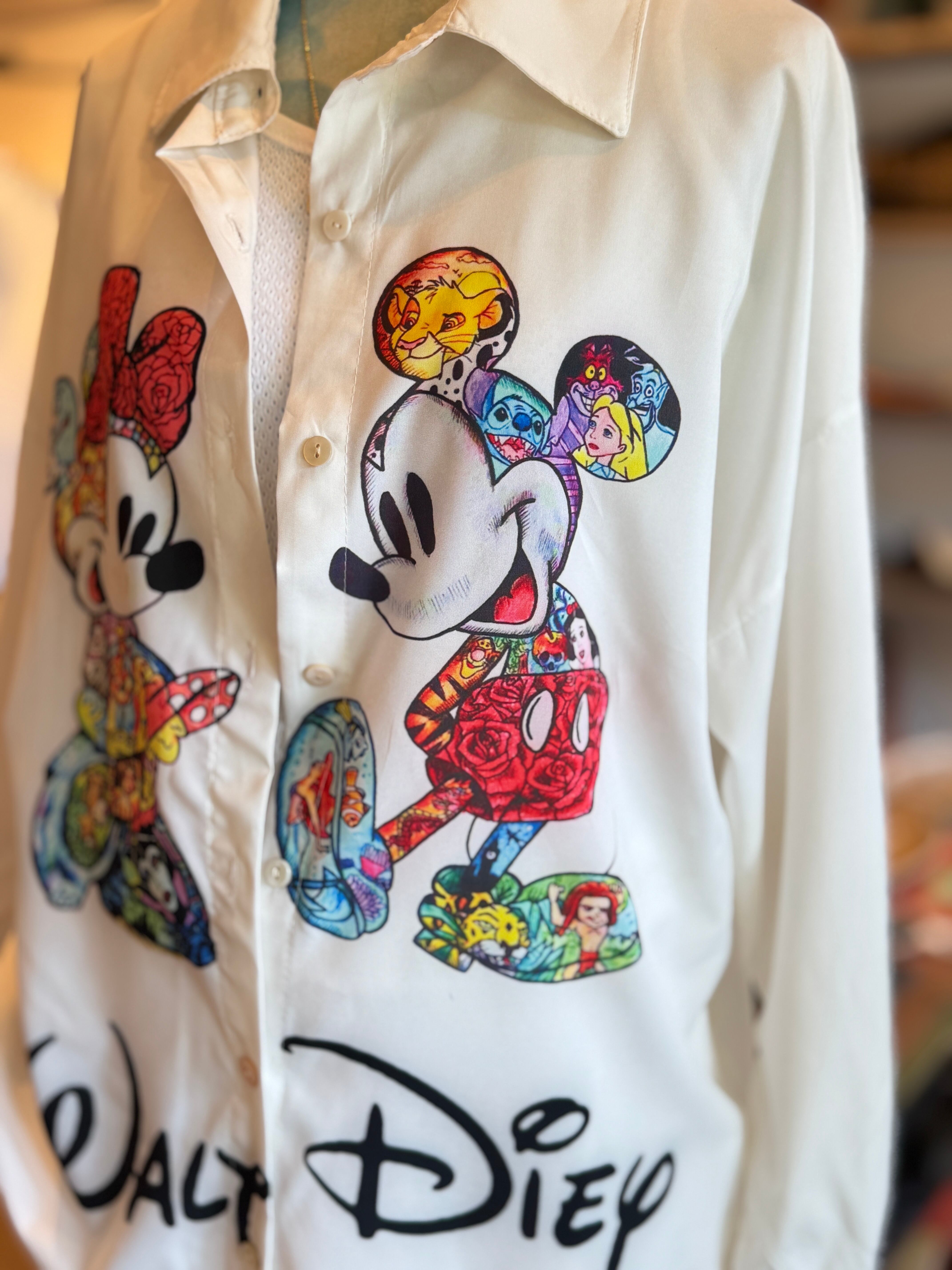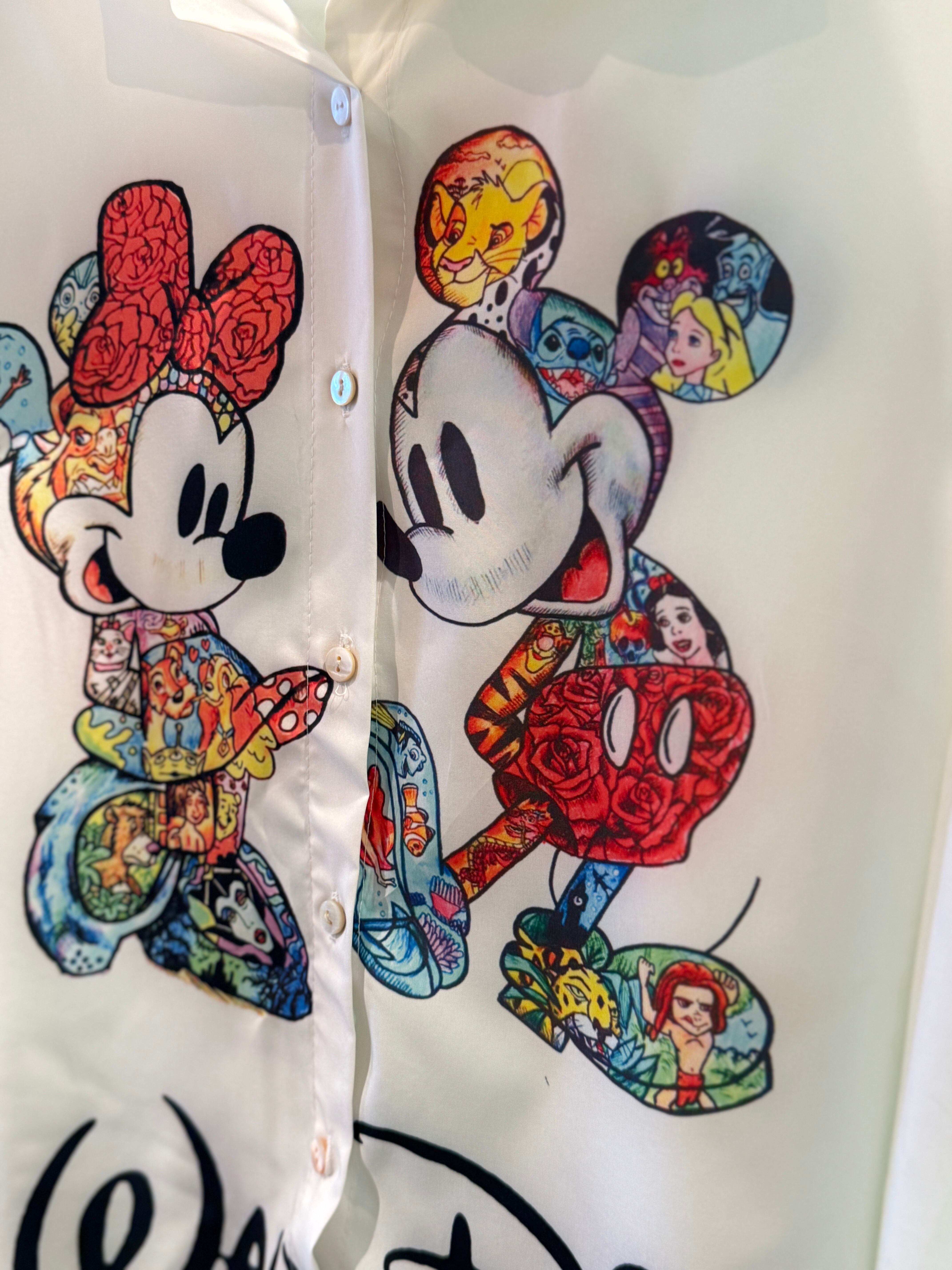 【イタリアのセンスが光る仕上がり – ミッキー&ミニー 総柄ディズニーシャツ】