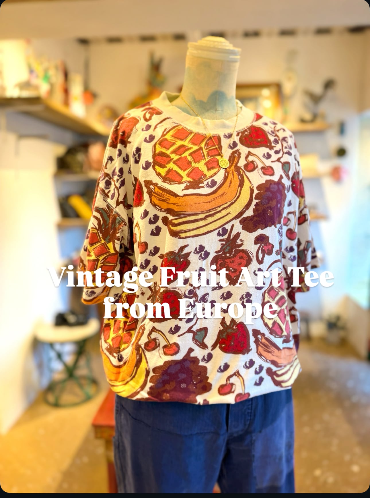 ヨーロッパから届いた、フルーツ総柄のヴィンテージTシャツです。