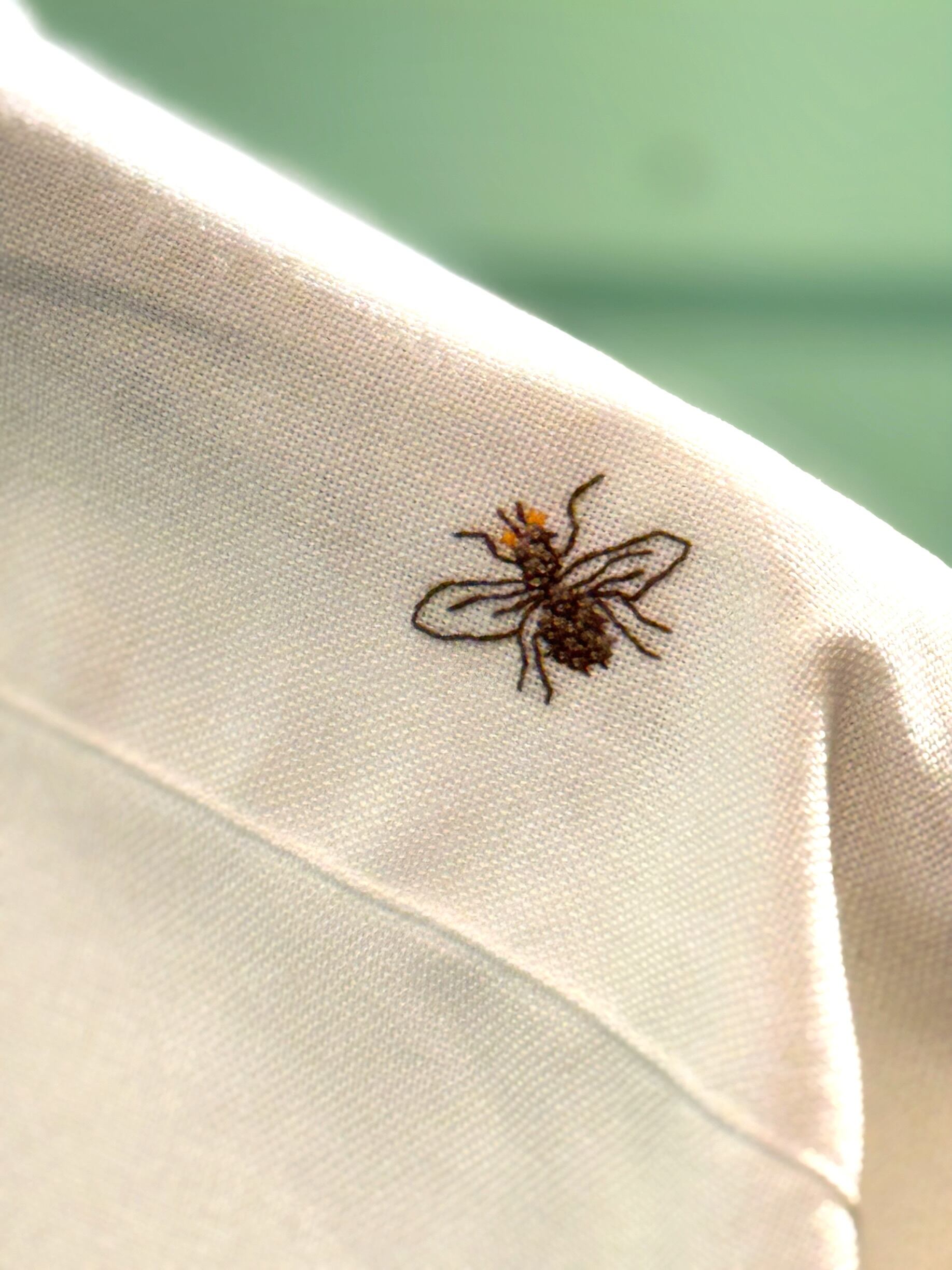 肩には小さなハチの秘密。
