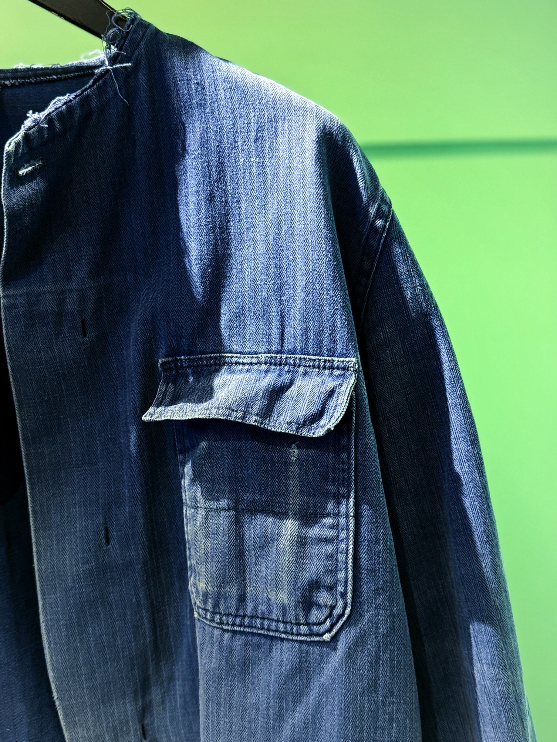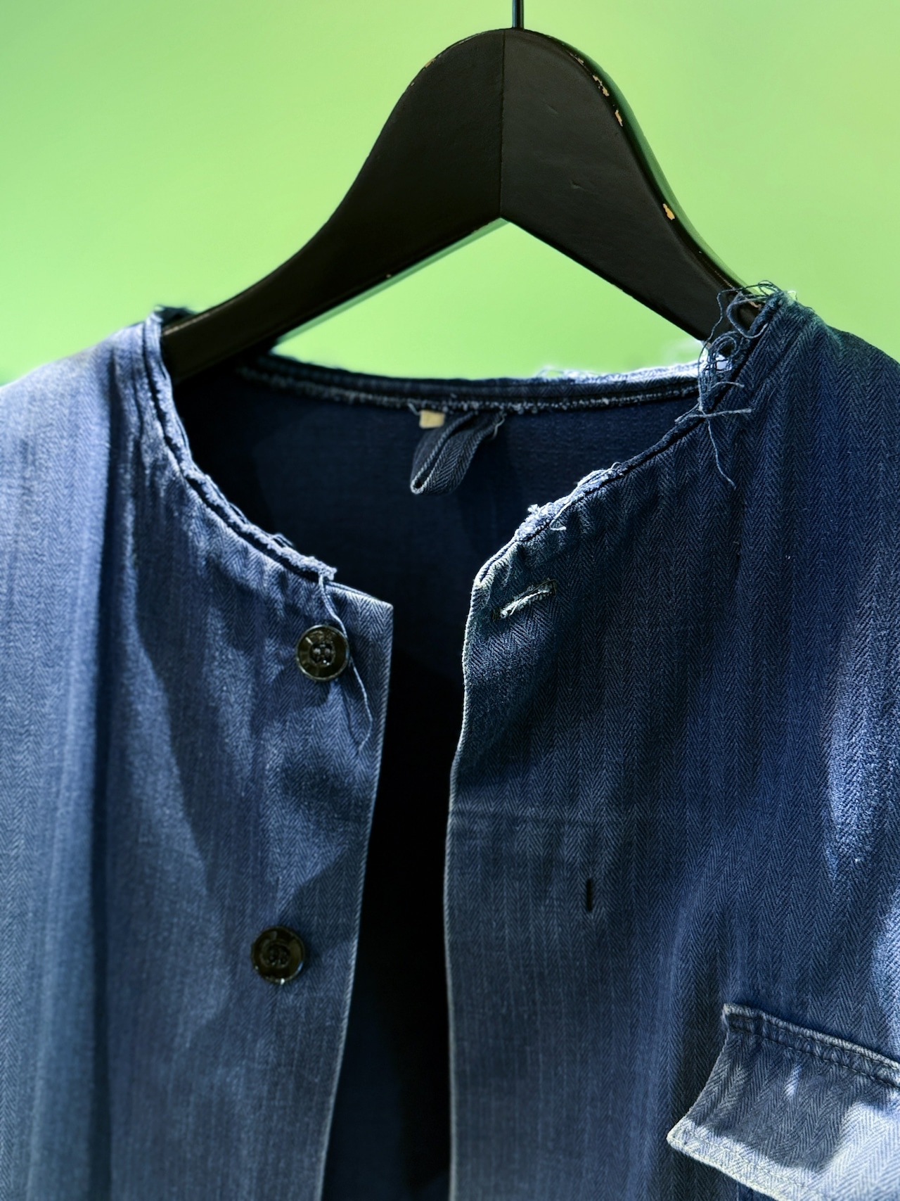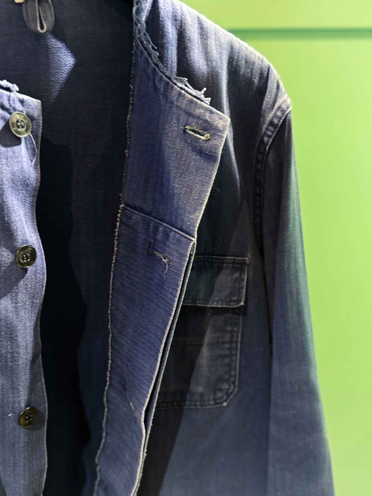 深みのあるブルーにフェード感が美しい、ヨーロッパ・ヴィンテージのワークジャケットです。