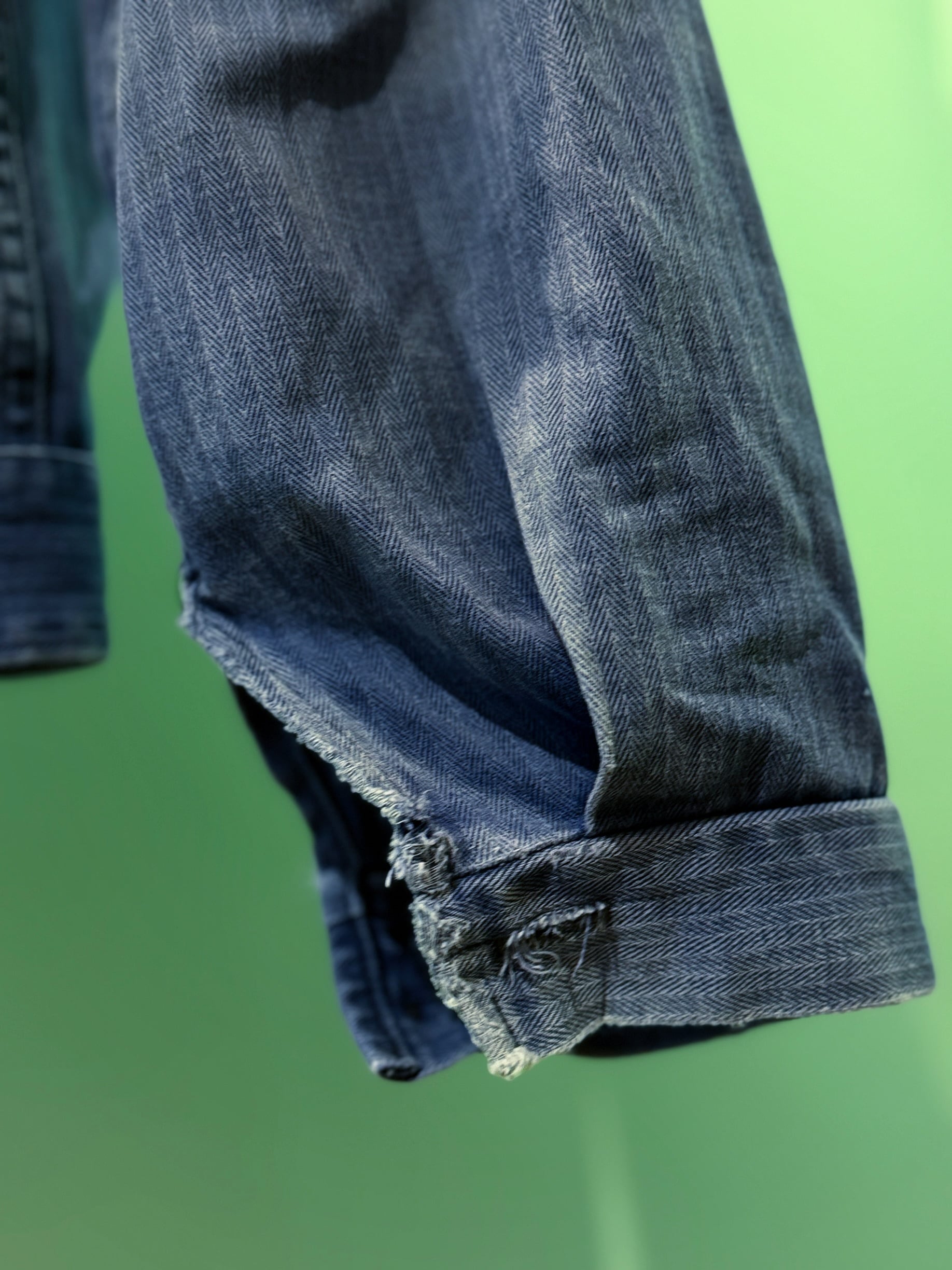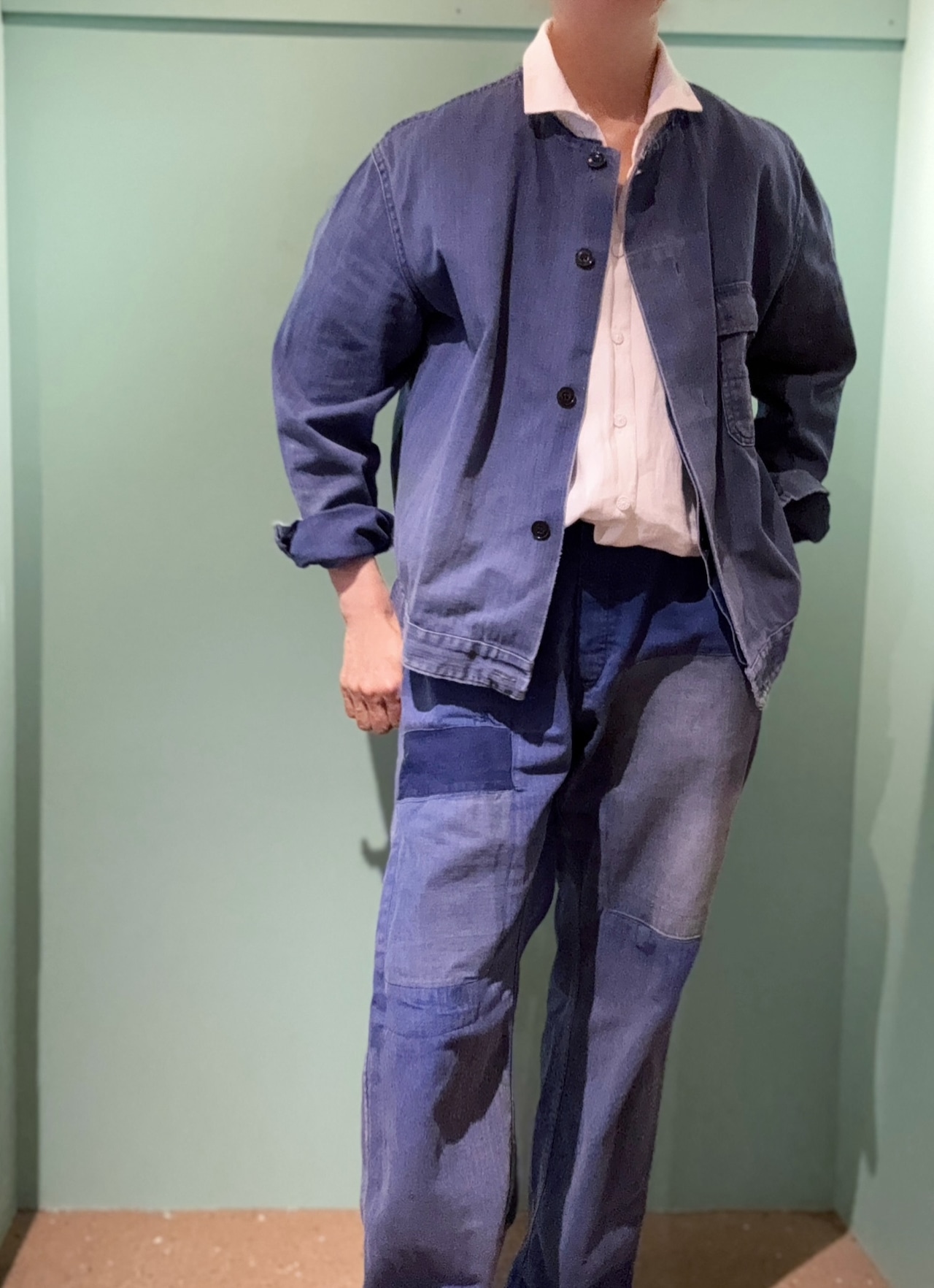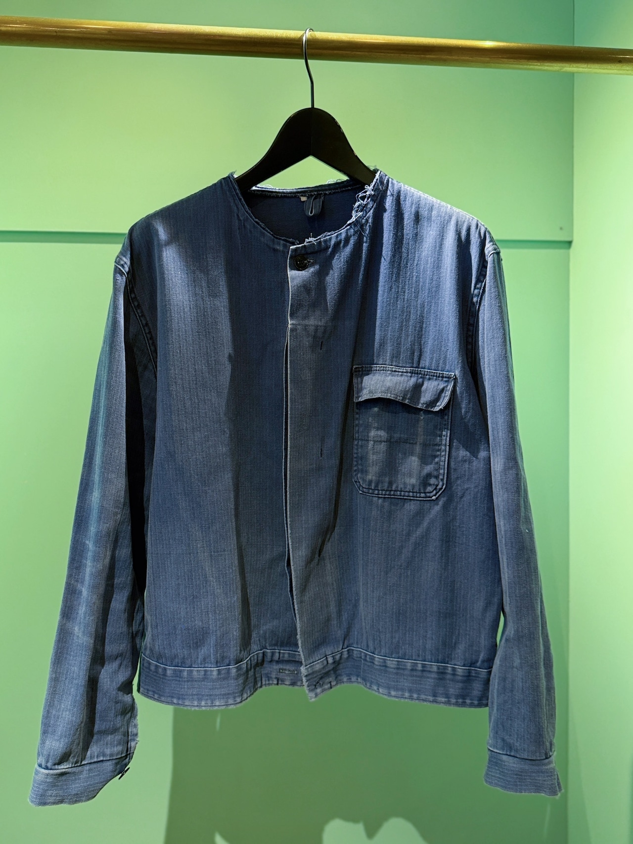 深みのあるブルーにフェード感が美しい、ヨーロッパ・ヴィンテージのワークジャケットです。