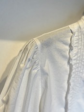 胸もとに並ぶ細かなピンタック、縁取るレース、