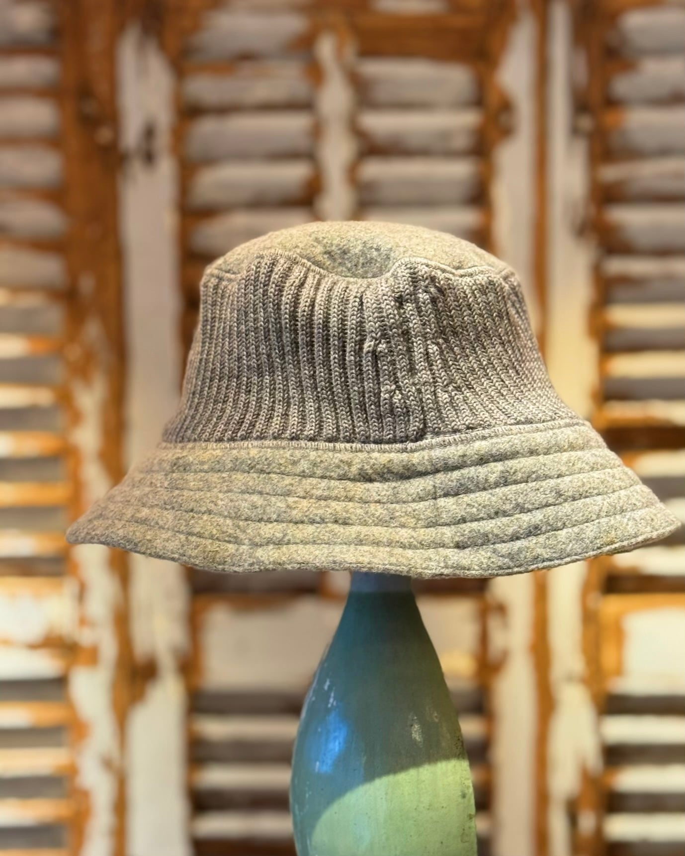 素材は、ウールフェルト × ニット切替という