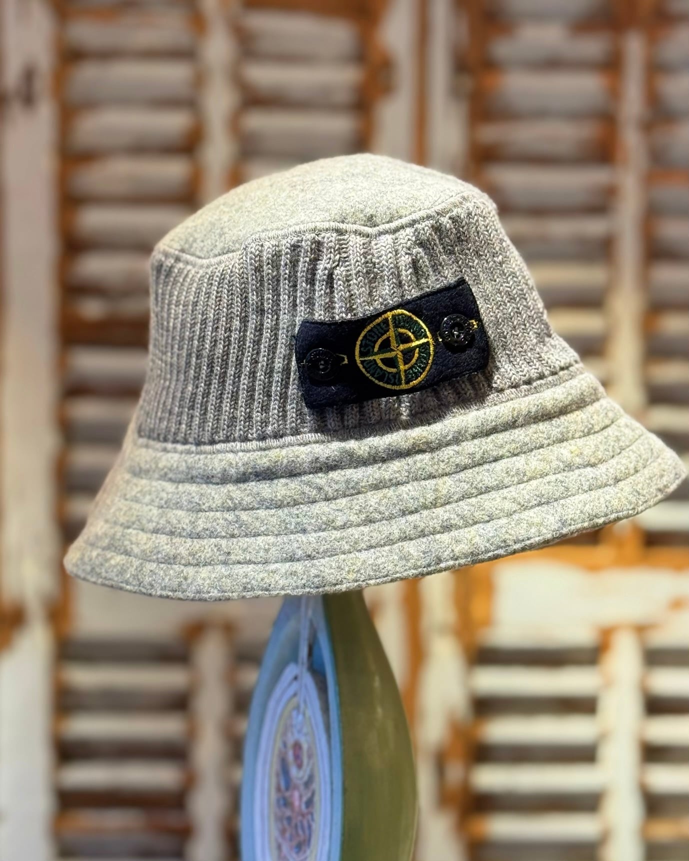 この時代、Stone Island はアウターとニットが主軸で、帽子の生産数自体が非常に少なく、バケットハットは当時から限られた展開でした。