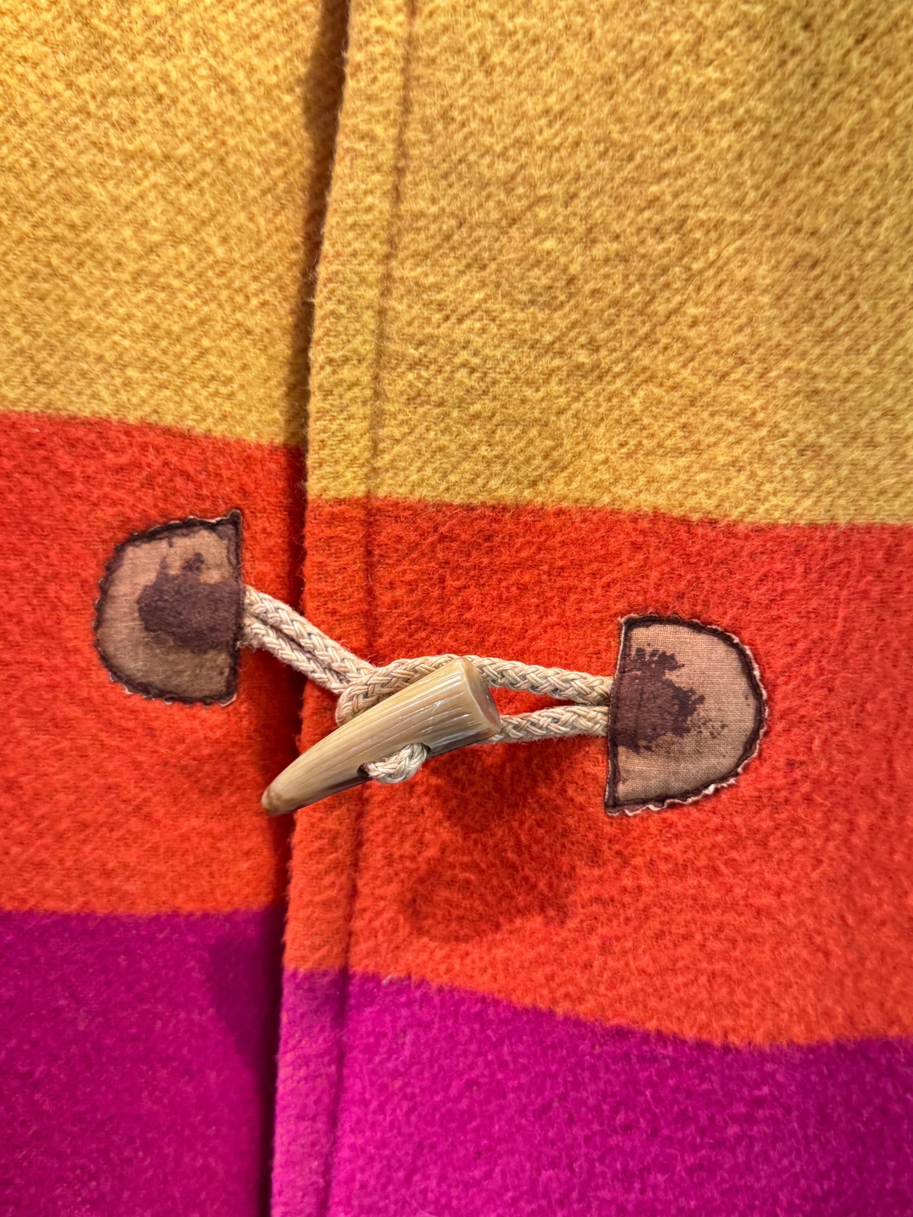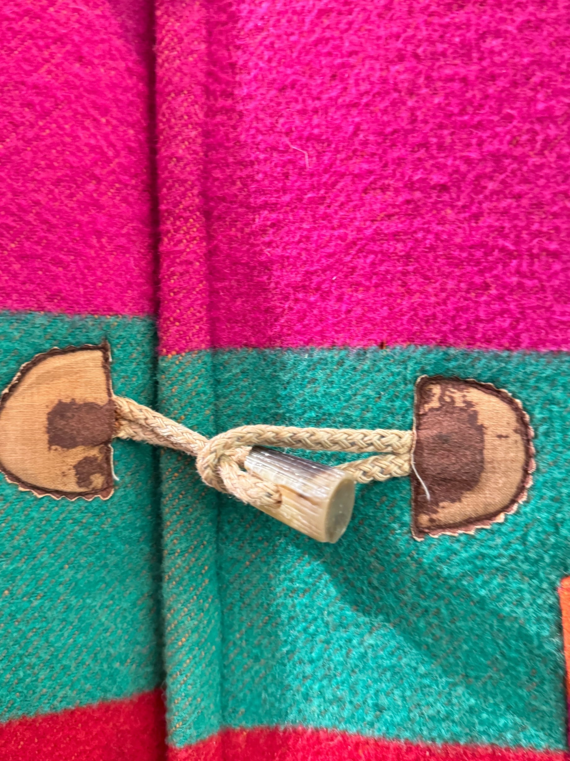 ※トグル留め部分の革に経年による剥がれあり