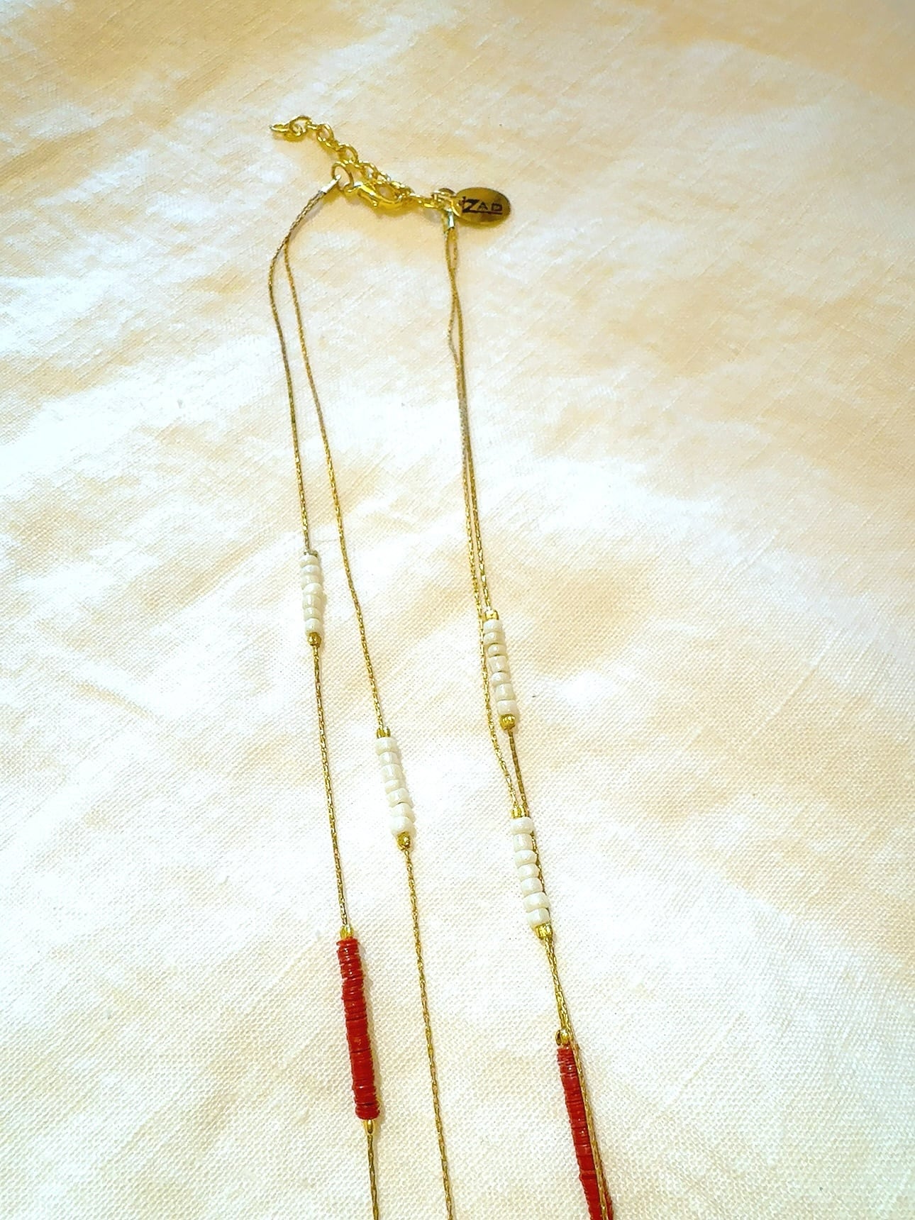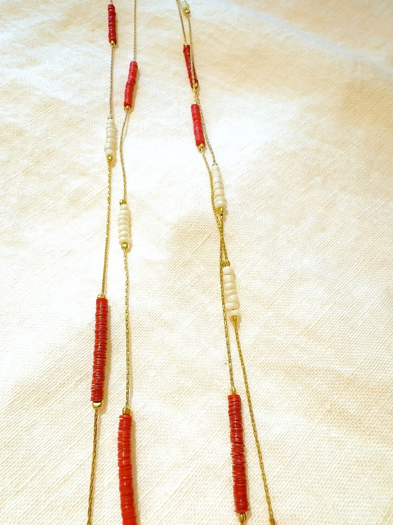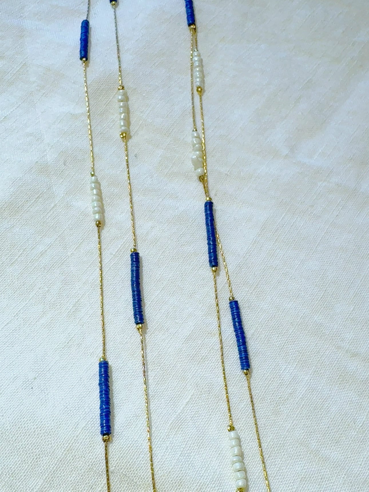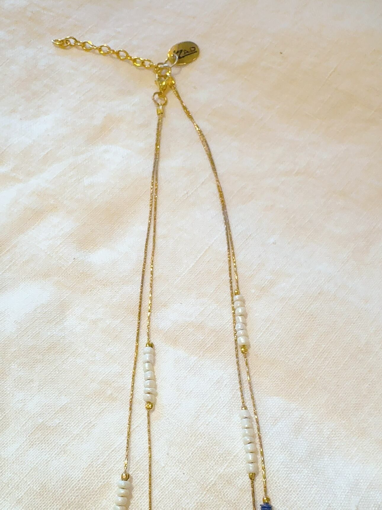 ゴールドチェーンとガラスビーズのネックレス。