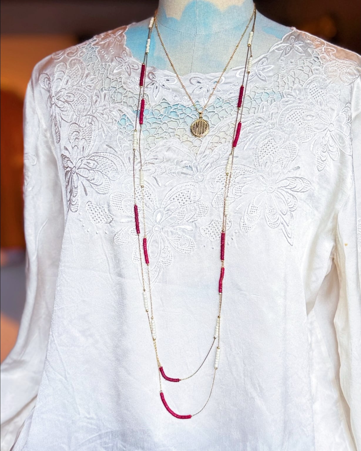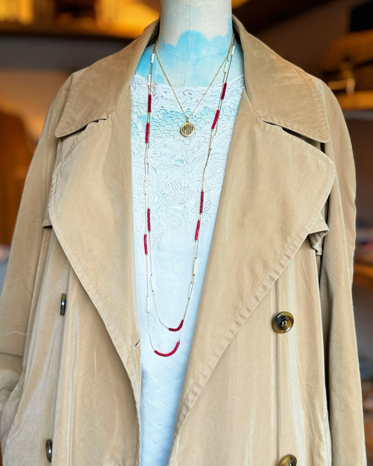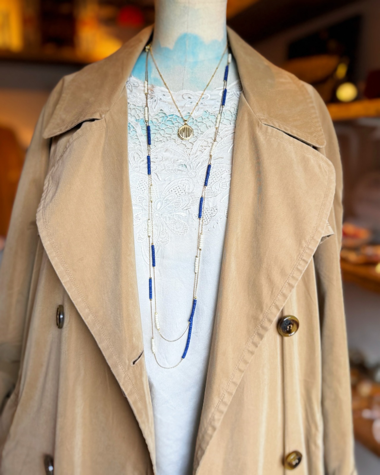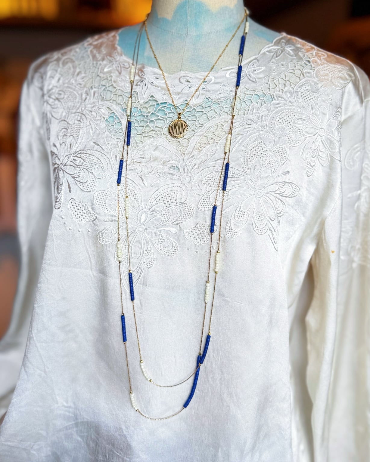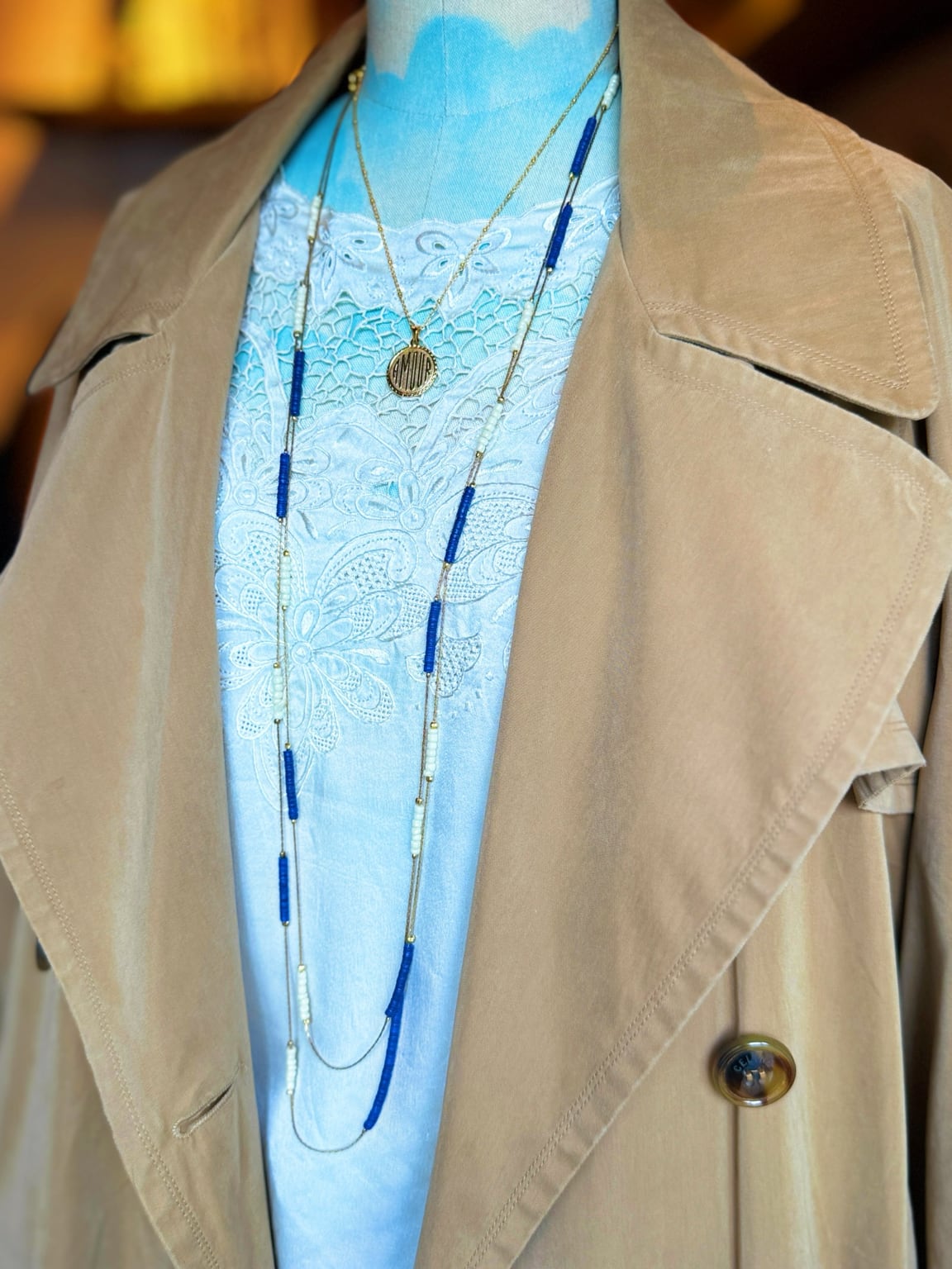 ゴールドチェーンとガラスビーズのネックレス。